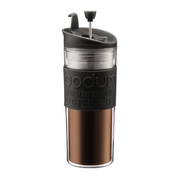 Enjoy your coffee anywhere with the Bodum Travel French Press, a portable coffee maker combining a French press system with an insulated travel mug.